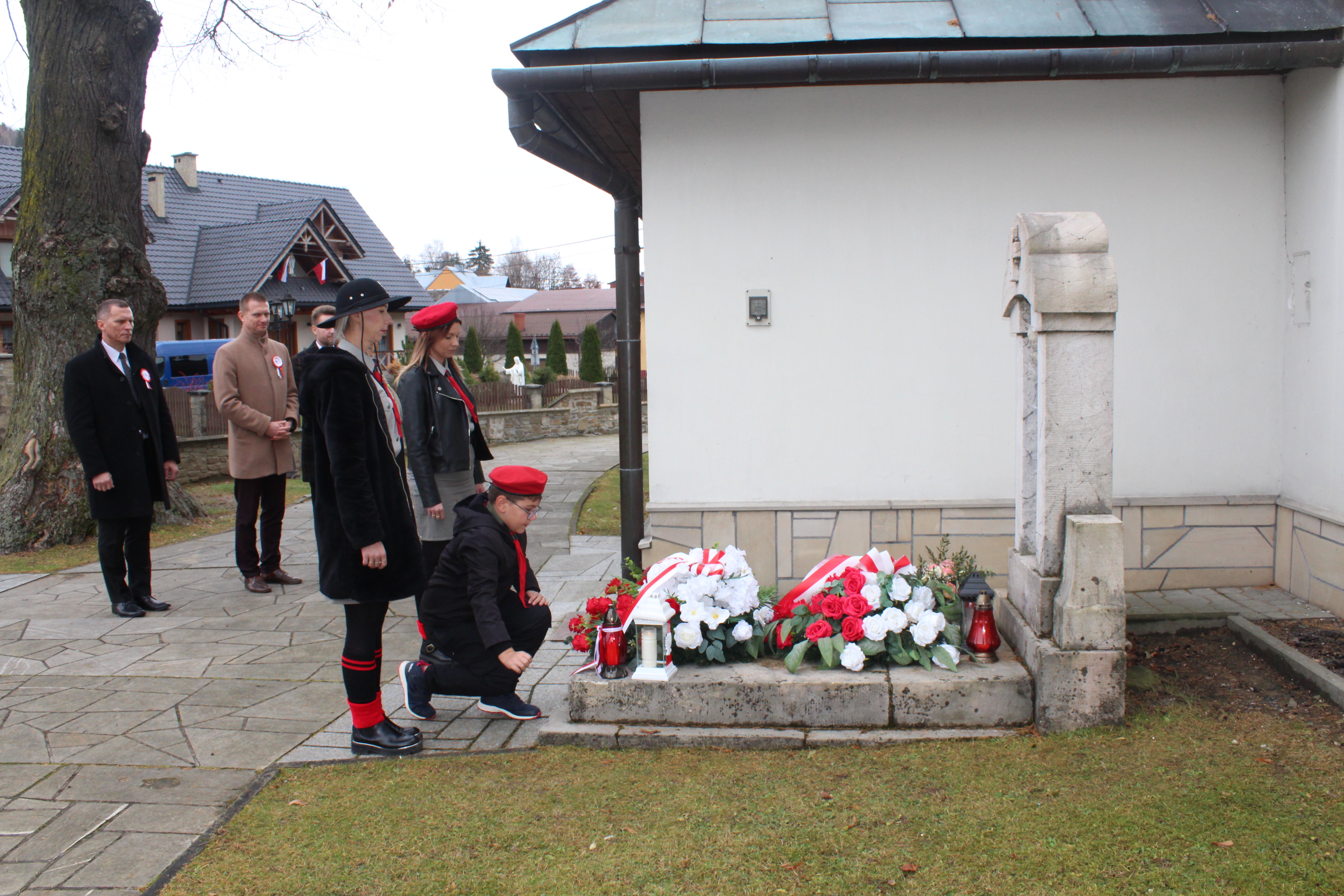 Kolejnym punktem uroczystości było złożenie wiązanek na grobie prof. Józefa Wiśmierskiego oraz pod tablicami upamiętniającymi bł. ks. Józefa Stanka i Wojciecha Halczyna. Był to wyraz pamięci i szacunku wobec osób zasłużonych dla naszej Ojczyzny.