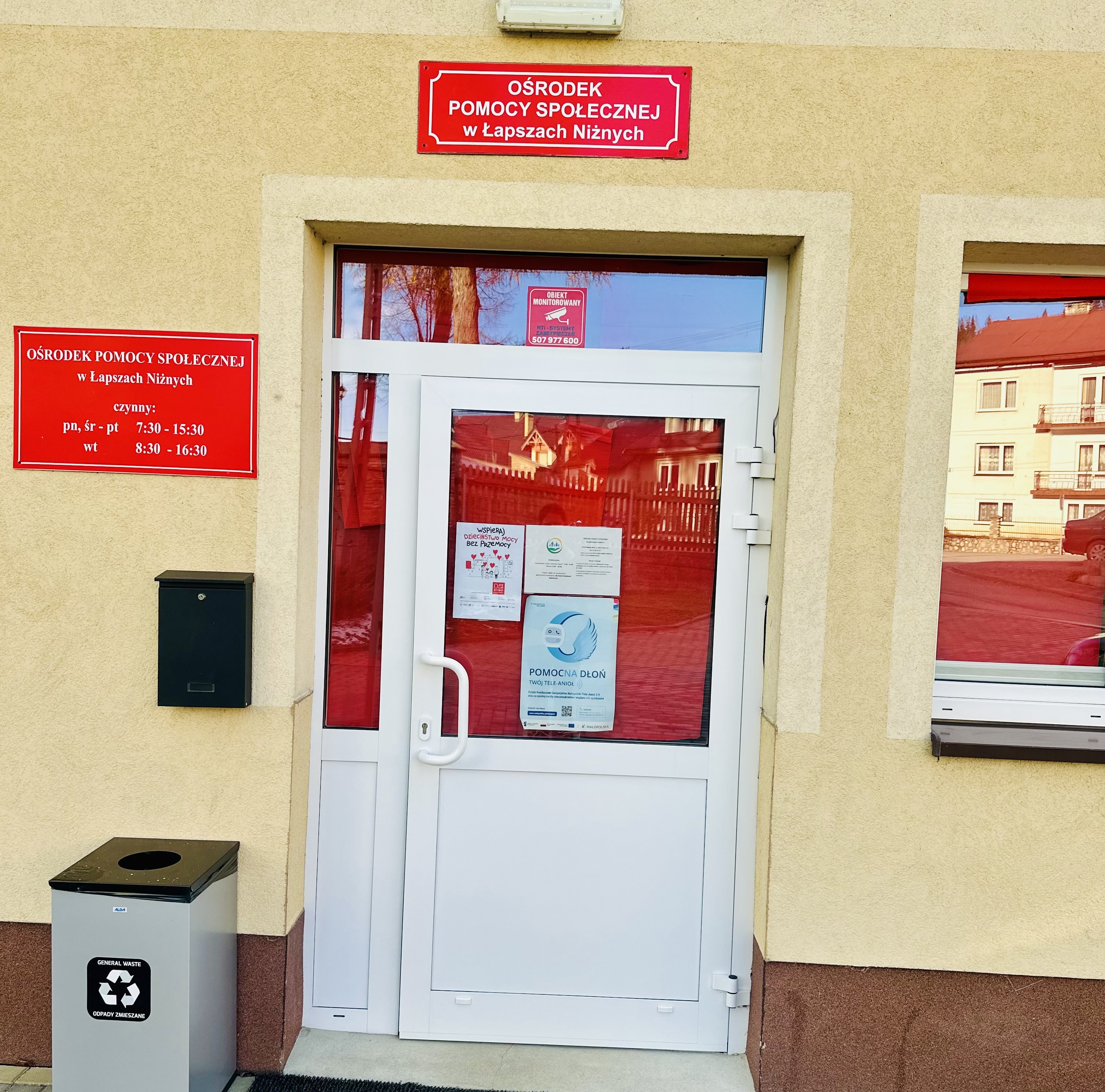 19 listopada o godzinie 17:00 budynek Ośrodka Pomocy Społecznej w Łapszach Niżnych został podświetlony na czerwono.