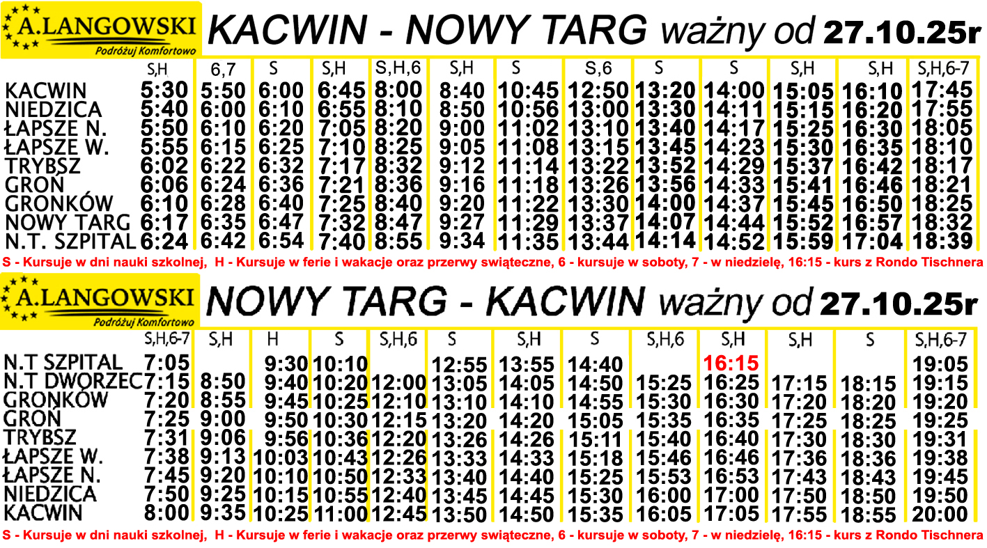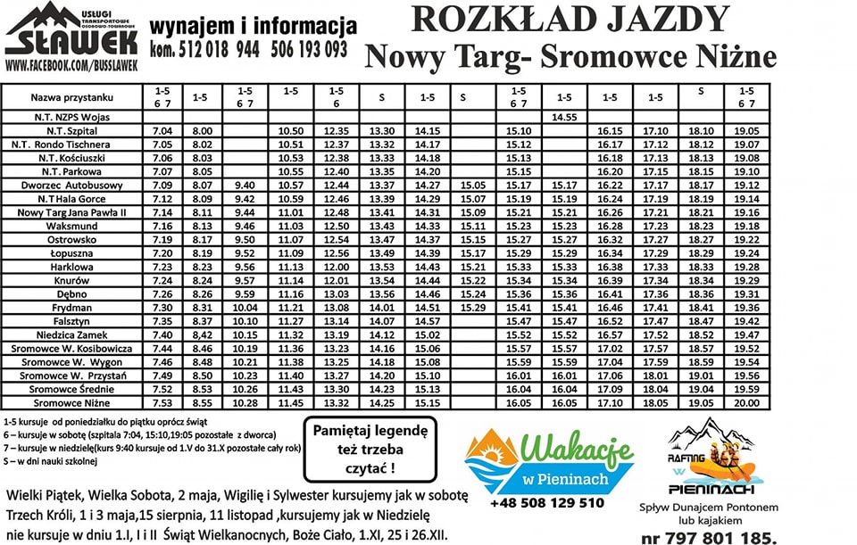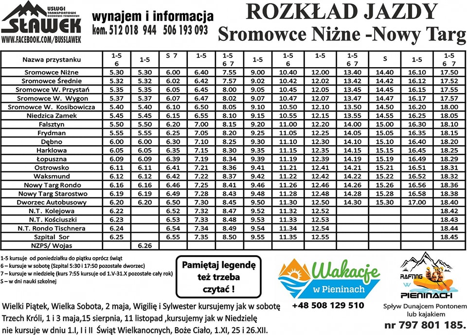 Linia nr 1 -  Kacwin - Niedzica – Łapsze- Trybsz- Białka Tatrzańska- Bukowina Tatrzańska (Urząd Gminy) – zostaje wydłużona do Bukowiny Tatrzańskiej (Urząd Gminny), kursuje od poniedziałku do piątku