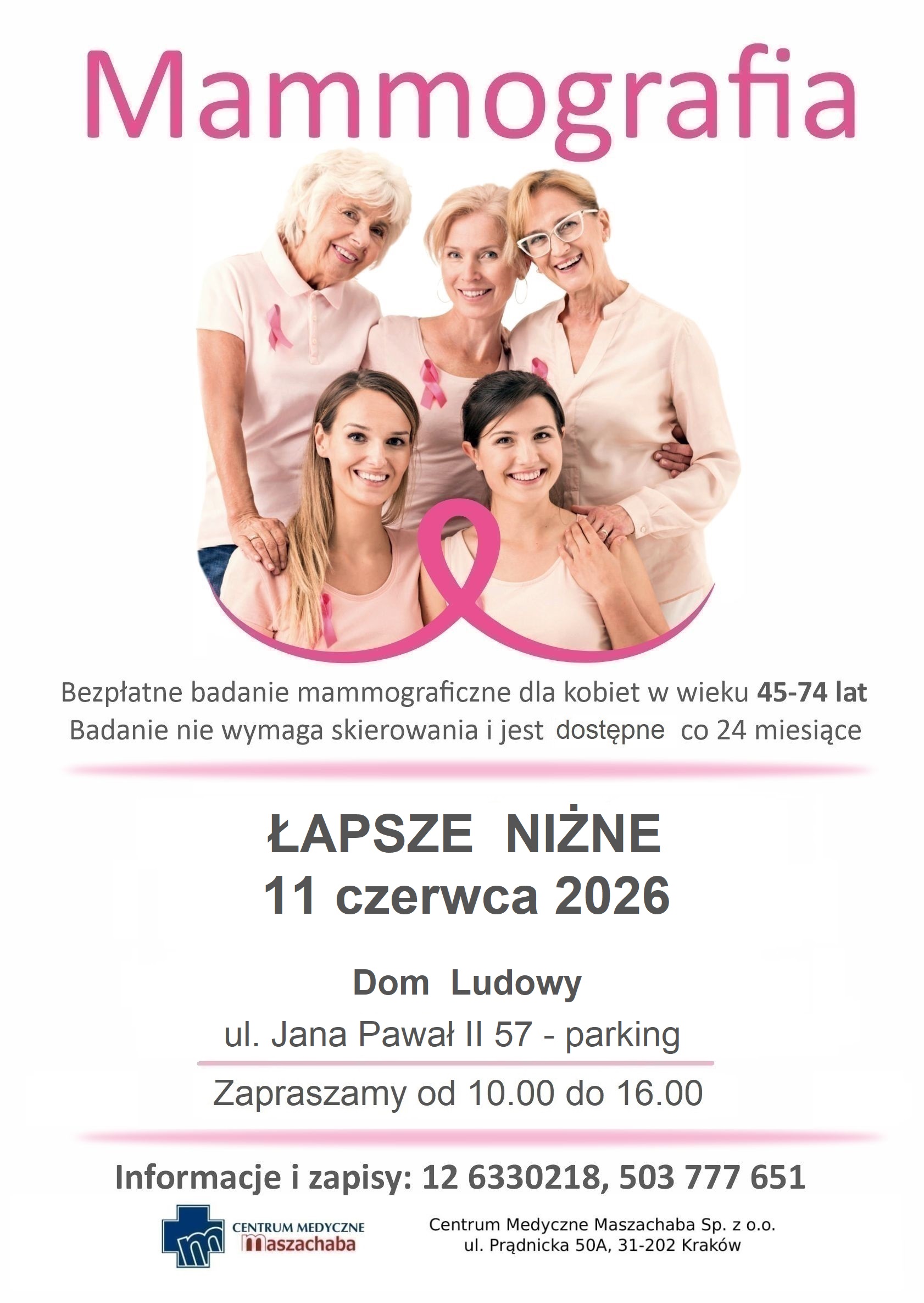 Centrum Medyczne MASZACHABA zaprasza na DARMOWĄ mammografię "Badam się – mam pewność!"
